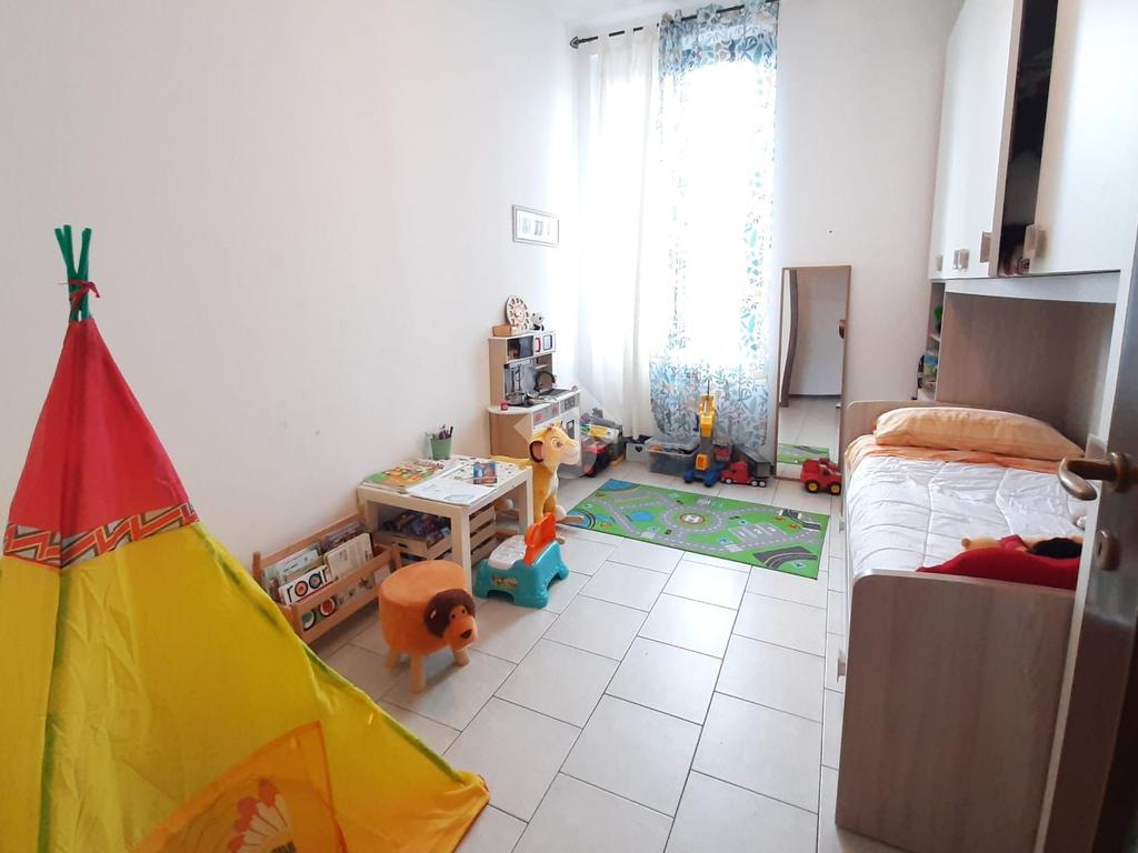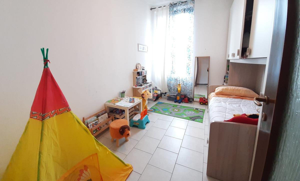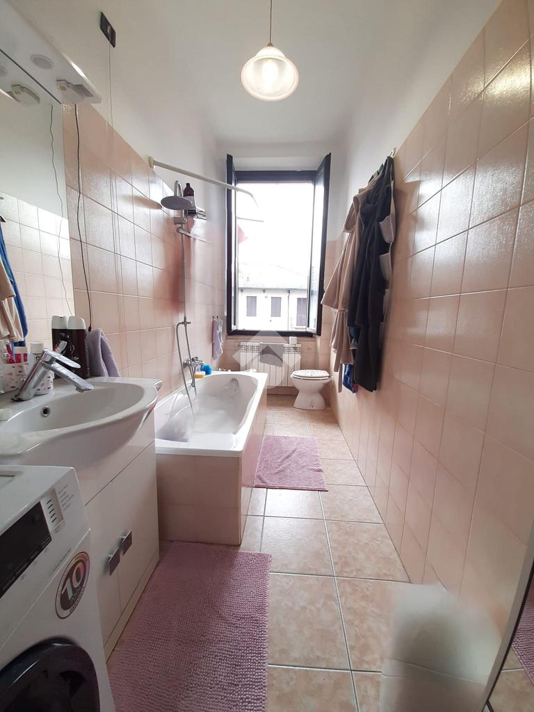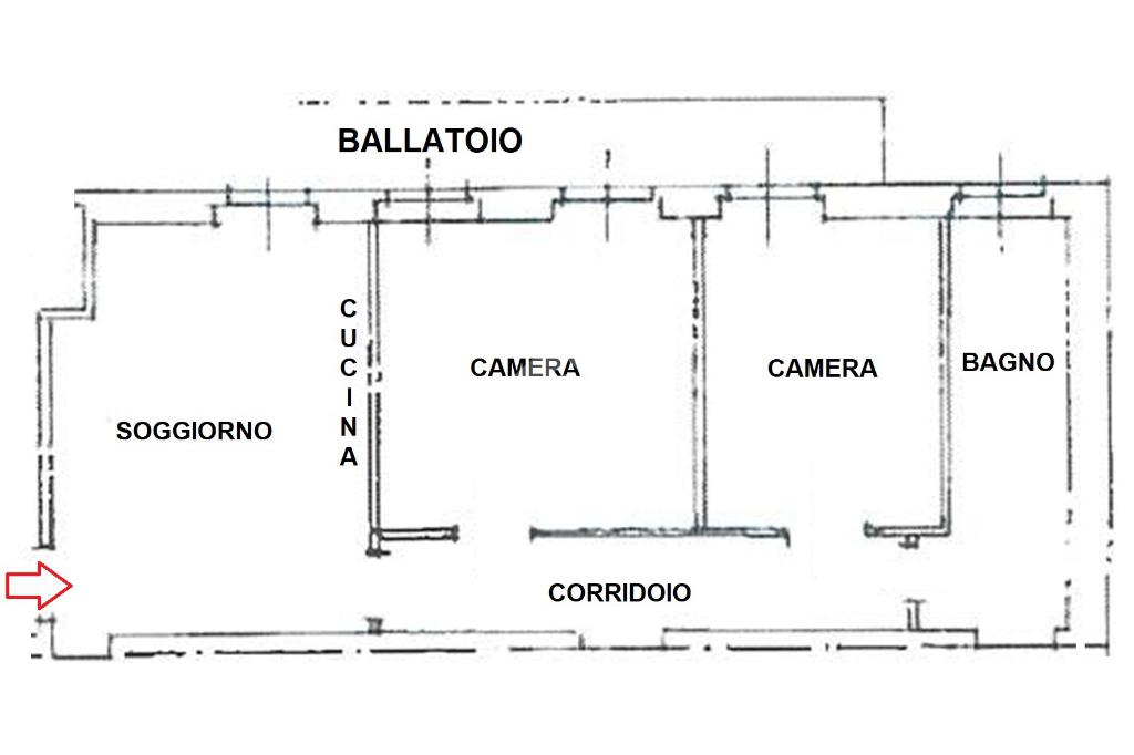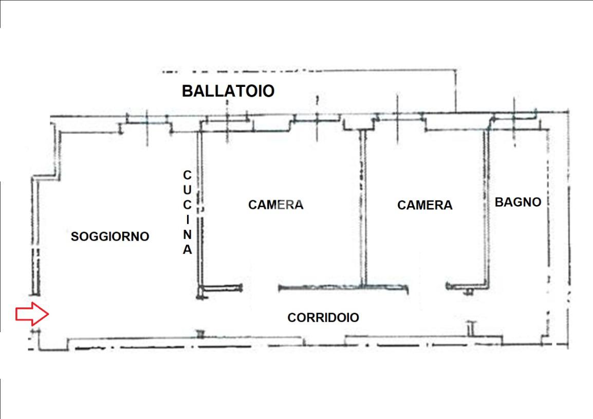 Sito al piano secondo senza ascensore (richiesta autorizzazione installazione ascensore in attesa di approvazione), ingresso diretto sul soggiorno accogliente con cucina a vista e affaccio al ballatoio-balcone, disimpegno, camera matrimoniale, seconda camera da letto e ed, infine, bagno finestrato con vasca. Buono stato interno.